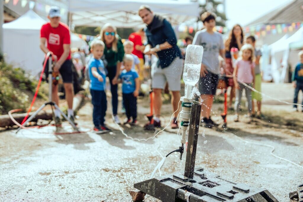 - ESERO – vzdělávací kanceláře Evropské vesmírné agentury vám předvede, jak vypadá raketa, jíž můžete vynést do výšky svůj vlastní minisatelit. Dále se dozvíte, jak měřit kvalitu vzduchu v okolí své školy a porovnávat data s družicovými snímky, jak bádat o klimatické změně, programovat experiment na ISS, či modelovat (a poté v interaktivní virtuální realitě projít) měsíční základnu. Anebo si prostě jenom přijďte rozpohybovat vlastní Sluneční soustavu! Doporučujeme vyzkoušet workshop vodních raketek. ?