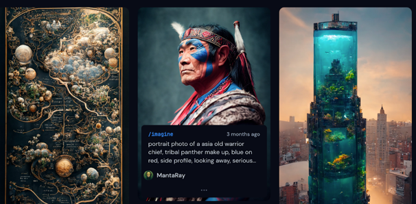 Obrázek J: Sdílení artefaktů a podnětů na midjourney.com/showcase.